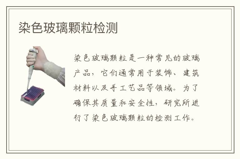 關(guān)鍵詞:染色玻璃顆粒測(cè)試周期,染色玻璃顆粒測(cè)試儀器,染色玻璃顆粒測(cè)試機(jī)構(gòu)