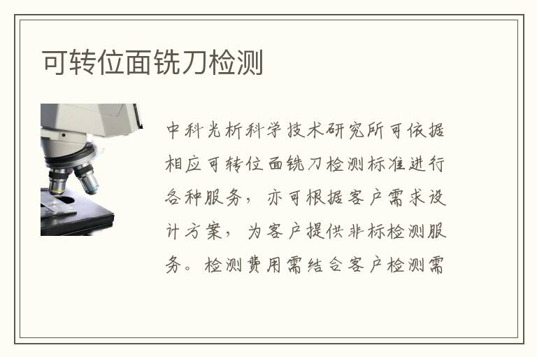 更多可轉(zhuǎn)位面銑刀檢測標準可咨詢工程師,工程師會根據(jù)不同產(chǎn)品類型的特點、不同行業(yè)和不同國家的法規(guī)標準以及客戶的需求,選取相應(yīng)標準的項目和方法進行可轉(zhuǎn)位面銑刀檢測。