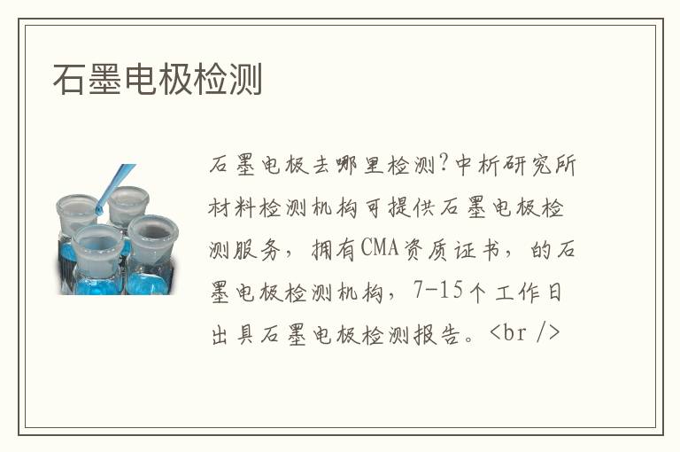 石墨電極去哪里檢測?中析研究所材料檢測機構(gòu)可提供石墨電極檢測服務(wù),CMA資質(zhì)認(rèn)證機構(gòu),高新技術(shù)企業(yè),正規(guī)的第三方檢測機構(gòu),7-15個工作日出具石墨電極檢測報告,檢測周期短、檢測費用低、檢測結(jié)果科學(xué)準(zhǔn)確!