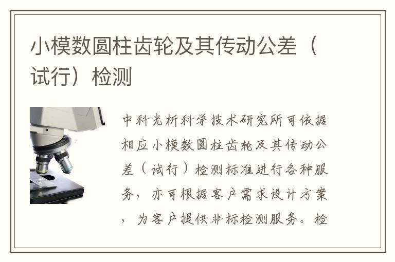 中科光析科學(xué)技術(shù)研究所可依據(jù)相應(yīng)小模數(shù)圓柱齒輪及其傳動(dòng)公差(試行)檢測標(biāo)準(zhǔn)進(jìn)行各種服務(wù),亦可根據(jù)客戶需求設(shè)計(jì)方案,為客戶提供非標(biāo)檢測服務(wù)。檢測費(fèi)用需結(jié)合客戶檢測需求以及實(shí)驗(yàn)復(fù)雜程度進(jìn)行報(bào)價(jià)。