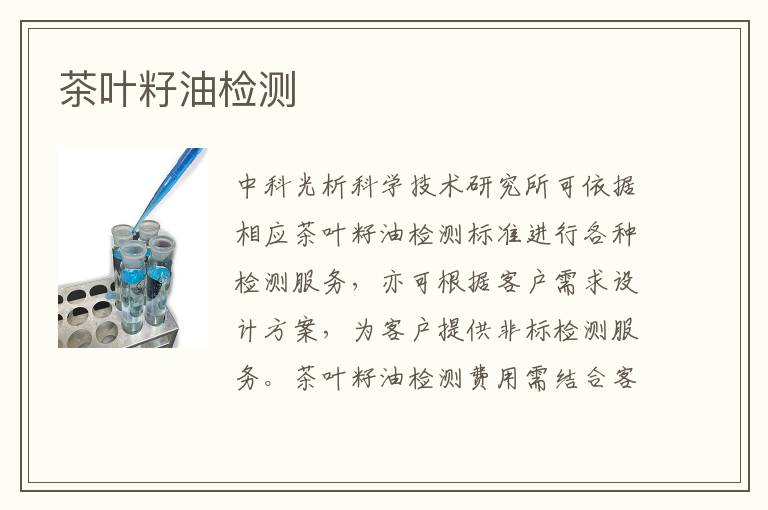 中科光析科學技術(shù)中析研究所可依據(jù)相應(yīng)茶葉籽油檢測標準進行各種檢測服務(wù),亦可根據(jù)客戶需求設(shè)計方案,為客戶提供非標檢測服務(wù)。茶葉籽油檢測費用需結(jié)合客戶檢測需求以及實驗復(fù)雜程度進行報價。一般7-15個工作日可出具檢測報告。茶葉籽油檢測是基于科學的分析方法和技術(shù),對茶葉籽油的各項品質(zhì)、安全和成分等指標進行測定的過程。這一檢測能確保茶葉籽油符合相關(guān)質(zhì)量標準,反映其從原料到加工、儲存等各環(huán)節(jié)的情況,為消費者、生產(chǎn)者和監(jiān)管者提供準確有效的信息。
