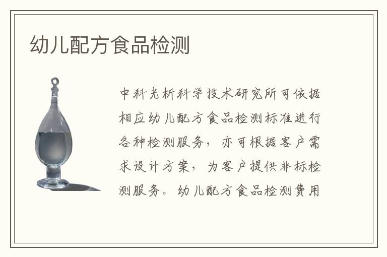 中科光析科學(xué)技術(shù)中析研究所可依據(jù)相應(yīng)幼兒配方食品檢測標(biāo)準(zhǔn)進(jìn)行各種檢測服務(wù),亦可根據(jù)客戶需求設(shè)計方案,為客戶提供非標(biāo)檢測服務(wù)。幼兒配方食品檢測費(fèi)用需結(jié)合客戶檢測需求以及實(shí)驗(yàn)復(fù)雜程度進(jìn)行報價。一般7-15個工作日可出具檢測報告。幼兒配方食品檢測是運(yùn)用科學(xué)的技術(shù)和方法,對幼兒配方食品的各項(xiàng)指標(biāo)進(jìn)行分析和評估的過程。它涉及多個正規(guī)領(lǐng)域的知識和技術(shù),旨在確保幼兒配方食品符合相關(guān)質(zhì)量和安全標(biāo)準(zhǔn),保障幼兒食用的健康和安全。