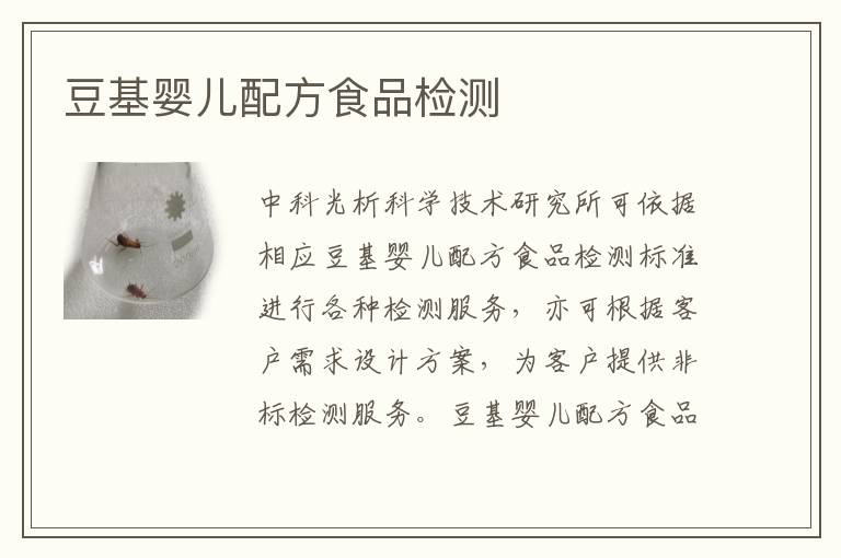 中科光析科學技術中析研究所可依據(jù)相應豆基嬰兒配方食品檢測標準進行各種檢測服務,亦可根據(jù)客戶需求設計方案,為客戶提供非標檢測服務。豆基嬰兒配方食品檢測費用需結合客戶檢測需求以及實驗復雜程度進行報價。一般7-15個工作日可出具檢測報告。豆基嬰兒配方食品檢測是指對以豆類為基礎的嬰兒配方食品進行正規(guī)的質量和安全檢測。此類檢測旨在確保嬰兒配方食品符合相關的衛(wèi)生、安全和營養(yǎng)要求,以保證嬰兒的健康成長。這種檢測需要高度的正規(guī)知識和精密的檢測設備,以識別潛在的有害成分和驗證營養(yǎng)成分的含量。