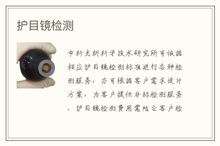 中科光析科學(xué)技術(shù)中析研究所可依據(jù)相應(yīng)護(hù)目鏡檢測(cè)標(biāo)準(zhǔn)進(jìn)行各種檢測(cè)服務(wù),亦可根據(jù)客戶需求設(shè)計(jì)方案,為客戶提供非標(biāo)檢測(cè)服務(wù)。護(hù)目鏡檢測(cè)費(fèi)用需結(jié)合客戶檢測(cè)需求以及實(shí)驗(yàn)復(fù)雜程度進(jìn)行報(bào)價(jià)。一般7-15個(gè)工作日可出具檢測(cè)報(bào)告。 ```html護(hù)目鏡檢測(cè)是一項(xiàng)正規(guī)性極高的檢測(cè)服務(wù),旨在確保護(hù)目鏡產(chǎn)品符合行業(yè)標(biāo)準(zhǔn)和安全規(guī)范。通過一系列嚴(yán)格的參數(shù)測(cè)試,這種檢測(cè)能有效保障佩戴者在不同環(huán)境下的眼睛安全,避免外界因素對(duì)眼睛的直接傷害。