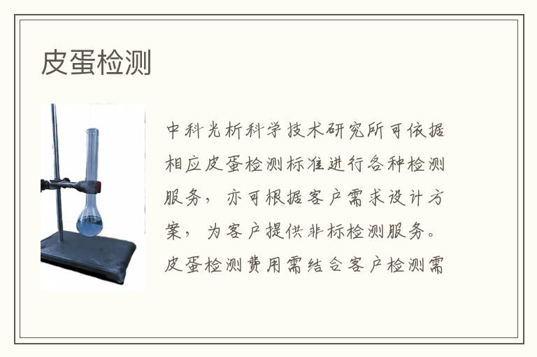 中科光析科學(xué)技術(shù)中析研究所可依據(jù)相應(yīng)皮蛋檢測(cè)標(biāo)準(zhǔn)進(jìn)行各種檢測(cè)服務(wù),亦可根據(jù)客戶(hù)需求設(shè)計(jì)方案,為客戶(hù)提供非標(biāo)檢測(cè)服務(wù)。皮蛋檢測(cè)費(fèi)用需結(jié)合客戶(hù)檢測(cè)需求以及實(shí)驗(yàn)復(fù)雜程度進(jìn)行報(bào)價(jià)。一般7-15個(gè)工作日可出具檢測(cè)報(bào)告。皮蛋,又稱(chēng)松花蛋,是一種傳統(tǒng)的中國(guó)食品,其生產(chǎn)流程復(fù)雜且涉及多種化學(xué)反應(yīng)。正規(guī)的皮蛋檢測(cè)旨在評(píng)估皮蛋的質(zhì)量、安全性及其是否符合相關(guān)食品標(biāo)準(zhǔn)。通過(guò)全面的檢測(cè),可以保障消費(fèi)者享受優(yōu)質(zhì)、安全且符合衛(wèi)生標(biāo)準(zhǔn)的皮蛋產(chǎn)品。
