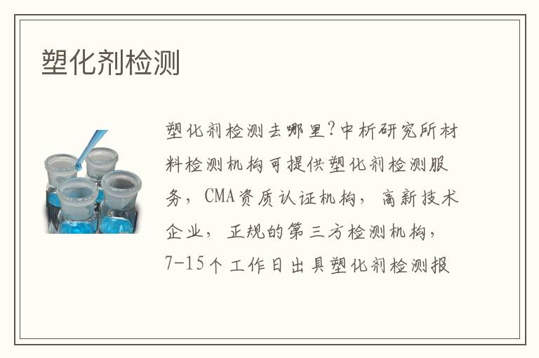 塑化劑檢測去哪里?中析研究所材料檢測機構(gòu)可提供塑化劑檢測服務(wù),CMA資質(zhì)認證機構(gòu),高新技術(shù)企業(yè),正規(guī)的第三方檢測機構(gòu),7-15個工作日出具塑化劑檢測報告,檢測周期短、檢測費用低、檢測結(jié)果科學(xué)準確!