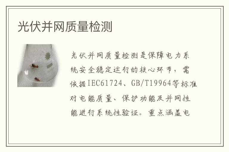 關(guān)鍵詞:光伏并網(wǎng)質(zhì)量測試周期,光伏并網(wǎng)質(zhì)量測試儀器,光伏并網(wǎng)質(zhì)量測試標準