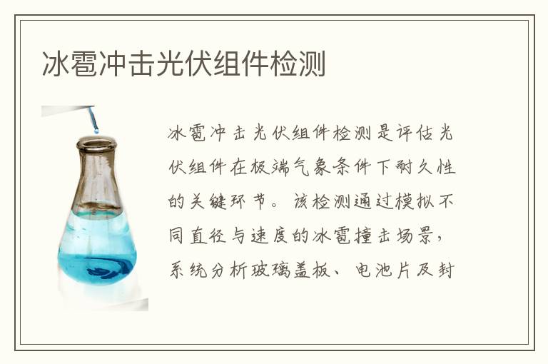 ASTM E1038-10《光伏模塊沖擊測試的標(biāo)準(zhǔn)試驗(yàn)方法》:美國材料與試驗(yàn)協(xié)會標(biāo)準(zhǔn),詳細(xì)描述了模擬冰雹沖擊的測試程序和參數(shù)設(shè)置,用于評估組件抗沖擊性能。