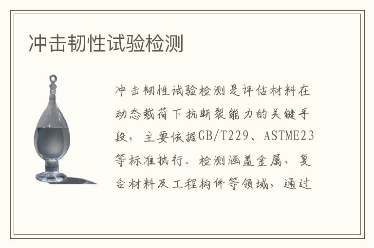 關(guān)鍵詞:沖擊韌性試驗(yàn)測(cè)試標(biāo)準(zhǔn),沖擊韌性試驗(yàn)測(cè)試范圍,沖擊韌性試驗(yàn)項(xiàng)目報(bào)價(jià)