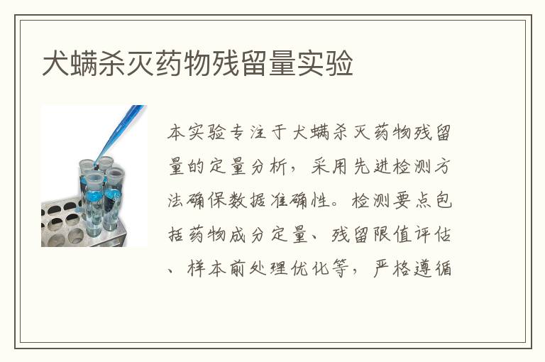 關(guān)鍵詞:犬螨殺滅藥物殘留量實驗測試標(biāo)準(zhǔn),犬螨殺滅藥物殘留量實驗項目報價,犬螨殺滅藥物殘留量實驗測試案例