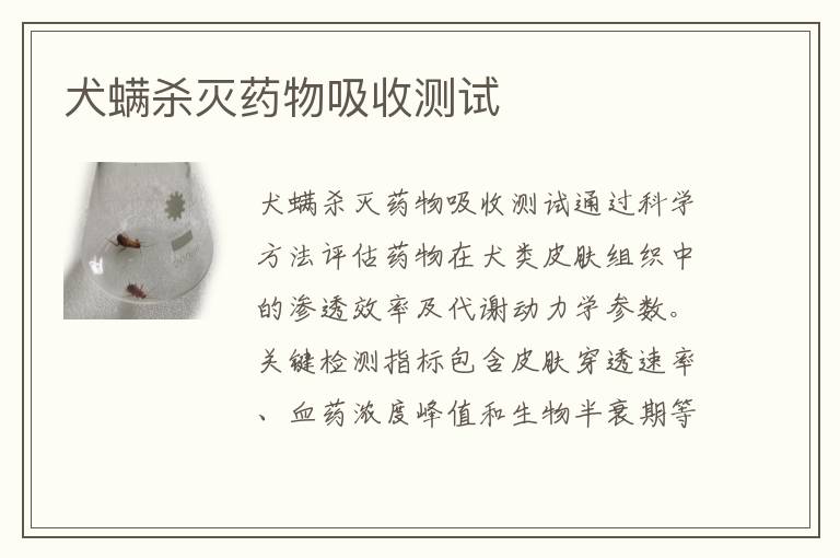 關(guān)鍵詞:犬螨殺滅藥物吸收測試測試周期,犬螨殺滅藥物吸收測試測試機(jī)構(gòu),犬螨殺滅藥物吸收測試測試方法