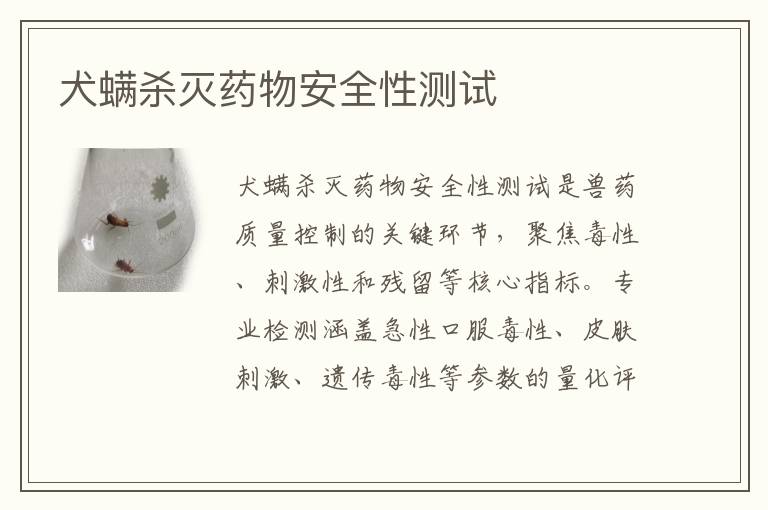 關(guān)鍵詞:犬螨殺滅藥物安全性測(cè)試測(cè)試周期,犬螨殺滅藥物安全性測(cè)試測(cè)試方法,犬螨殺滅藥物安全性測(cè)試測(cè)試標(biāo)準(zhǔn)