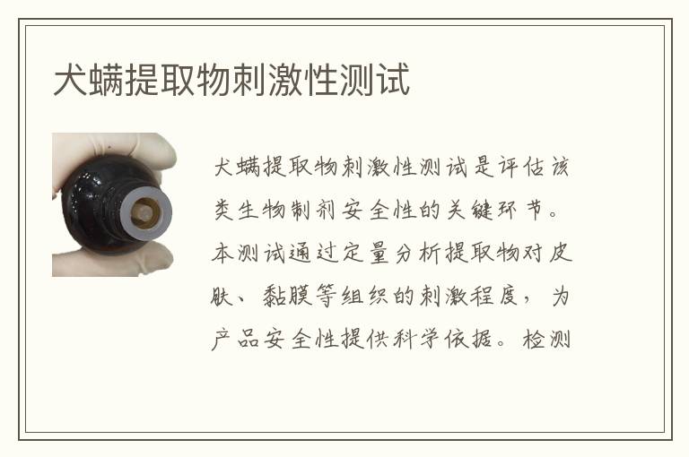 關(guān)鍵詞:犬螨提取物刺激性測試測試范圍,犬螨提取物刺激性測試測試周期,犬螨提取物刺激性測試測試方法