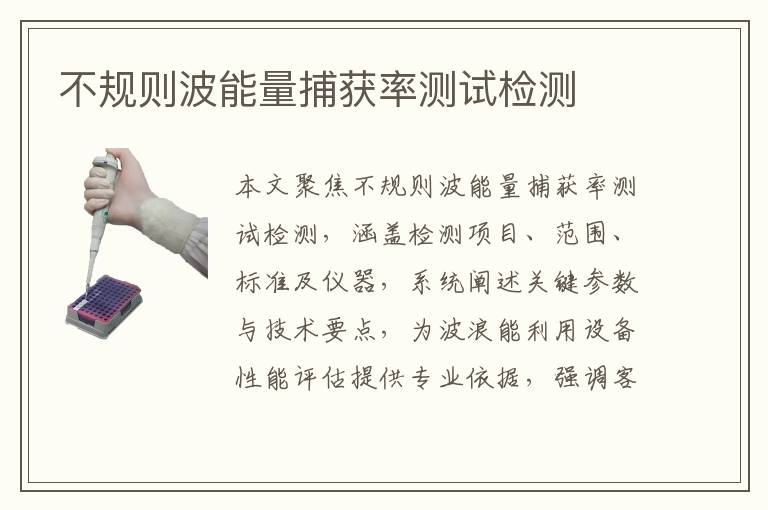 關(guān)鍵詞:不規(guī)則波能量捕獲率測(cè)試測(cè)試標(biāo)準(zhǔn),不規(guī)則波能量捕獲率測(cè)試項(xiàng)目報(bào)價(jià),不規(guī)則波能量捕獲率測(cè)試測(cè)試周期