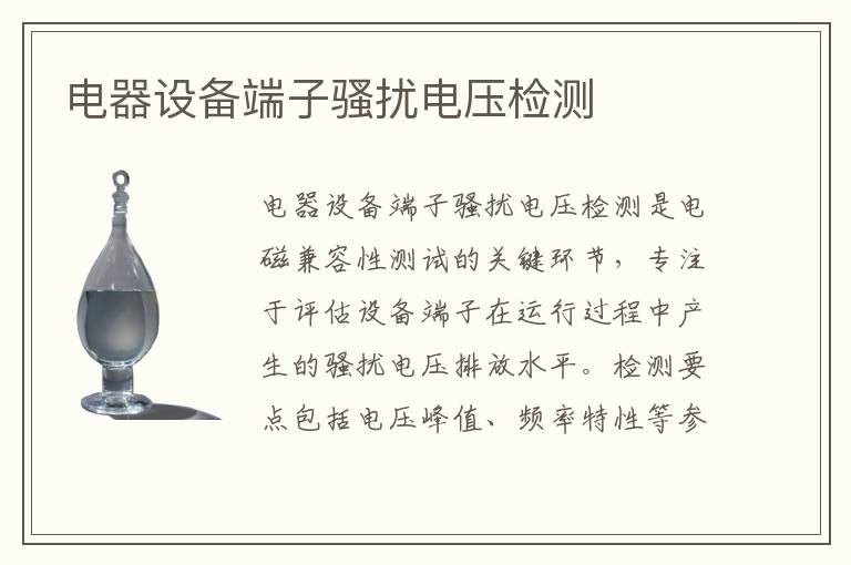 關(guān)鍵詞:電器設(shè)備端子騷擾電壓測(cè)試機(jī)構(gòu),電器設(shè)備端子騷擾電壓項(xiàng)目報(bào)價(jià),電器設(shè)備端子騷擾電壓測(cè)試方法