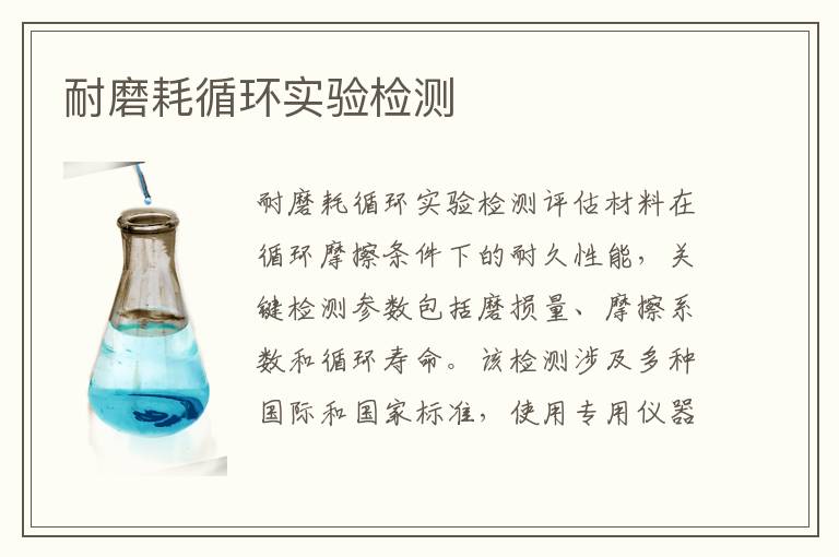 關(guān)鍵詞:耐磨耗循環(huán)實(shí)驗(yàn)測(cè)試方法,耐磨耗循環(huán)實(shí)驗(yàn)測(cè)試周期,耐磨耗循環(huán)實(shí)驗(yàn)項(xiàng)目報(bào)價(jià)