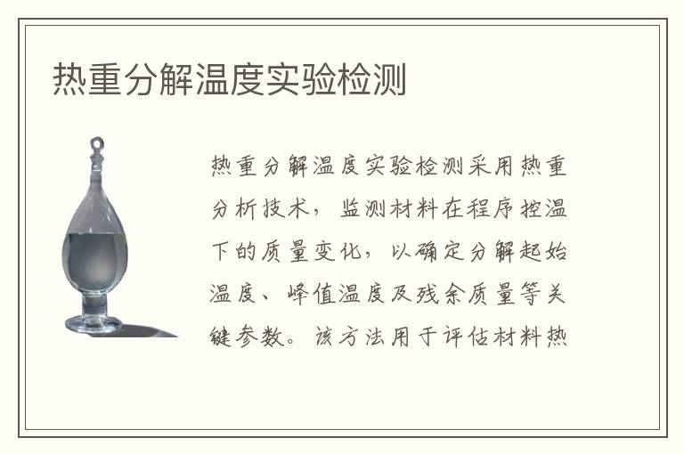 關(guān)鍵詞:熱重分解溫度實(shí)驗(yàn)測(cè)試周期,熱重分解溫度實(shí)驗(yàn)測(cè)試標(biāo)準(zhǔn),熱重分解溫度實(shí)驗(yàn)項(xiàng)目報(bào)價(jià)