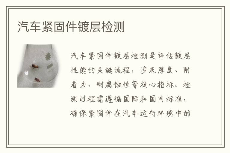 關(guān)鍵詞:汽車緊固件鍍層測(cè)試標(biāo)準(zhǔn),汽車緊固件鍍層測(cè)試案例,汽車緊固件鍍層測(cè)試周期