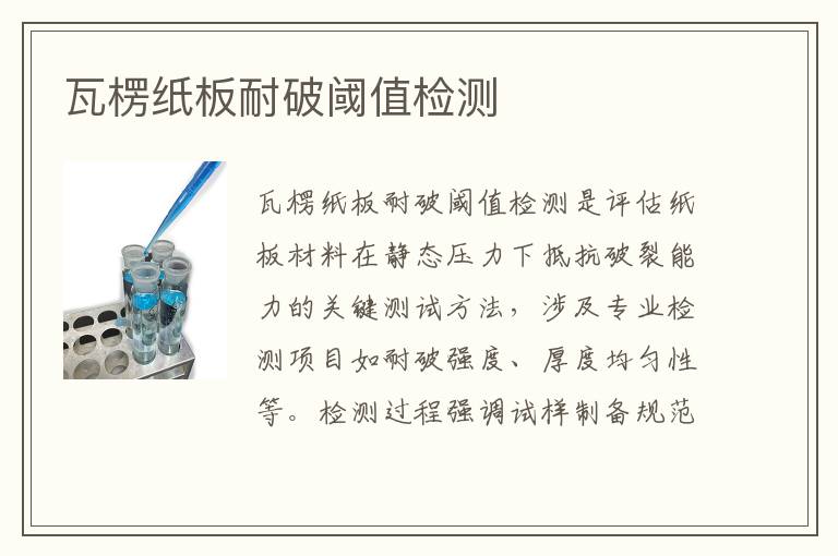關(guān)鍵詞:瓦楞紙板耐破閾值測(cè)試范圍,瓦楞紙板耐破閾值測(cè)試儀器,瓦楞紙板耐破閾值測(cè)試機(jī)構(gòu)