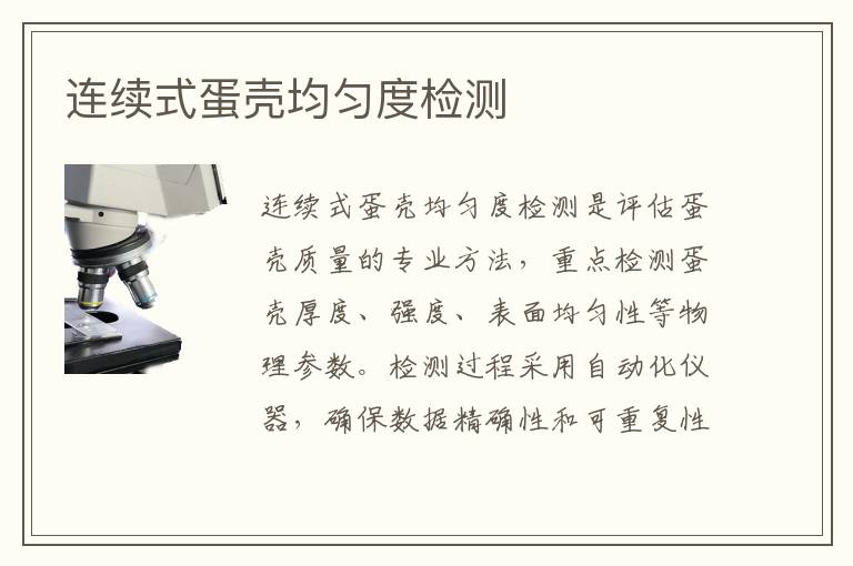 關(guān)鍵詞:連續(xù)式蛋殼均勻度項目報價,連續(xù)式蛋殼均勻度測試方法,連續(xù)式蛋殼均勻度測試周期