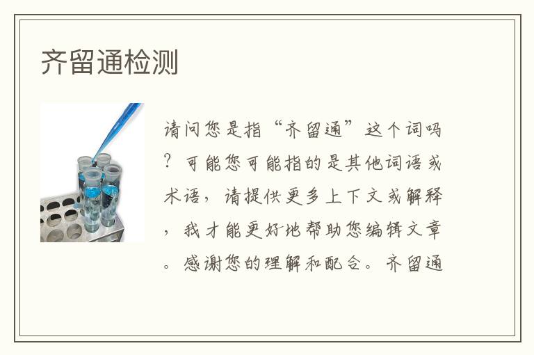 請問您是指“齊留通”這個詞嗎?可能您可能指的是其他詞語或術(shù)語,請?zhí)峁└嗌舷挛幕蚪忉?,我才能更好地幫助您編輯文章。感謝您的理解和配合。更多齊留通檢測標準可咨詢工程師,工程師會根據(jù)不同產(chǎn)品類型的特點、不同行業(yè)和不同國家的法規(guī)標準以及客戶的需求,選取相應(yīng)標準的項目和方法進行齊留通檢測。