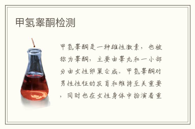 甲氫睪酮的檢測可通過血液、尿液或唾液樣本進(jìn)行。在男性中,檢測甲氫睪酮的目的通常是評估睪丸功能、診斷性功能異常癥,或指導(dǎo)男性激素替代治療。在女性中,甲氫睪酮的檢測可能用于評估多囊卵巢綜合征、不孕癥或其他與激素失衡有關(guān)的疾病。