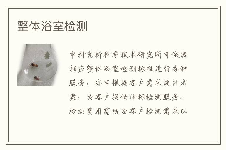 關(guān)鍵詞:整體浴室測(cè)試儀器,整體浴室測(cè)試范圍,整體浴室項(xiàng)目報(bào)價(jià)