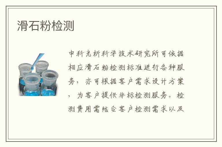 關(guān)鍵詞:滑石粉測試標(biāo)準(zhǔn),滑石粉測試范圍,滑石粉測試方法