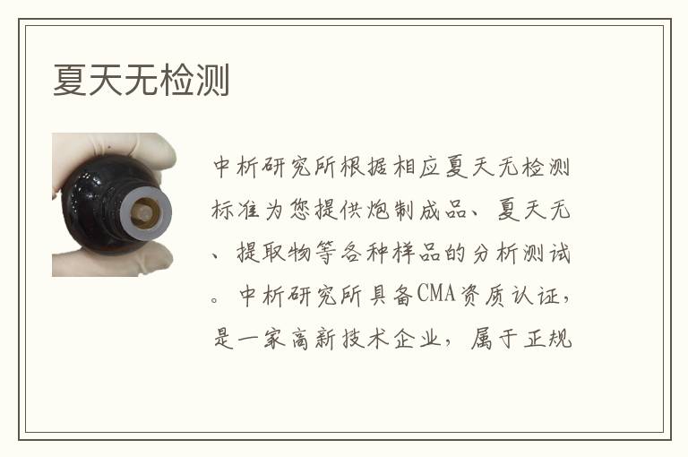 關(guān)鍵詞:夏天無測試機構(gòu),夏天無測試儀器,夏天無測試范圍